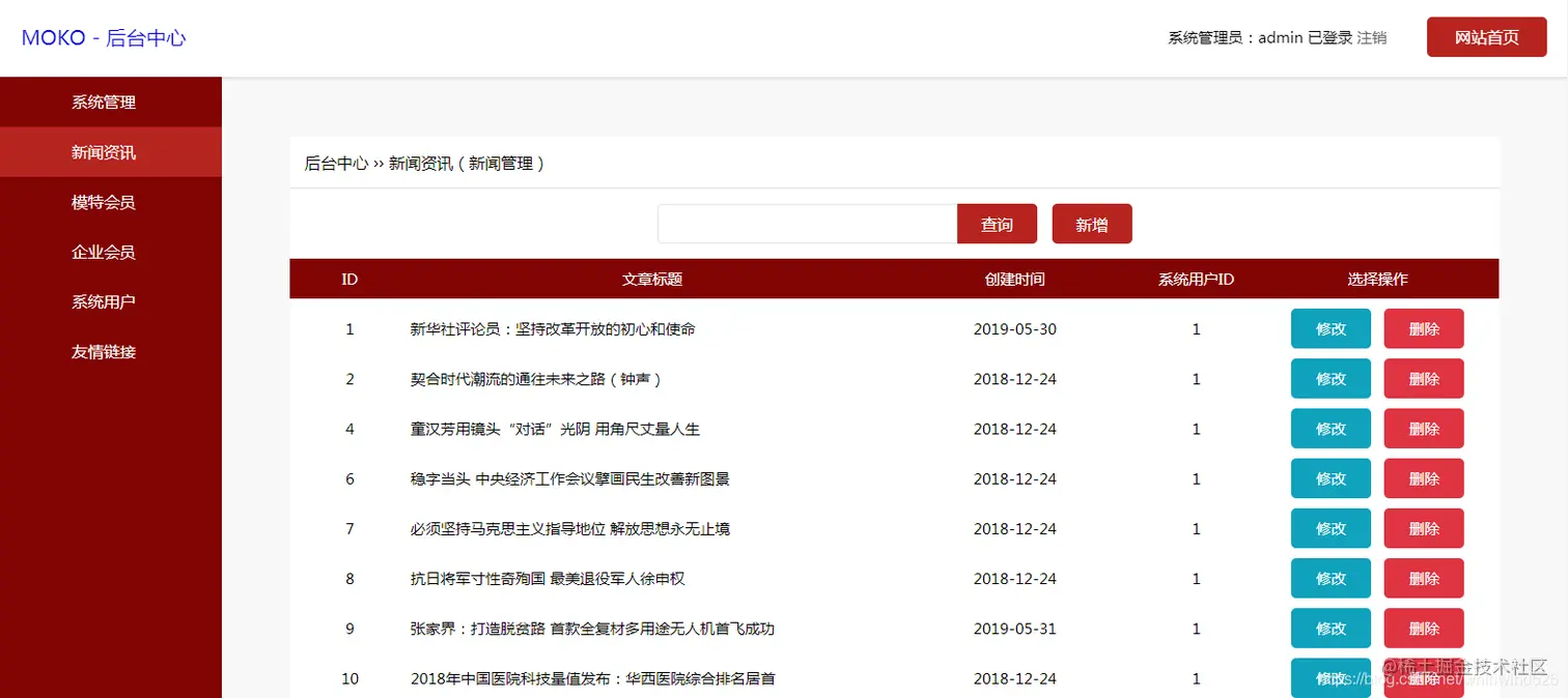 系统用户管理: