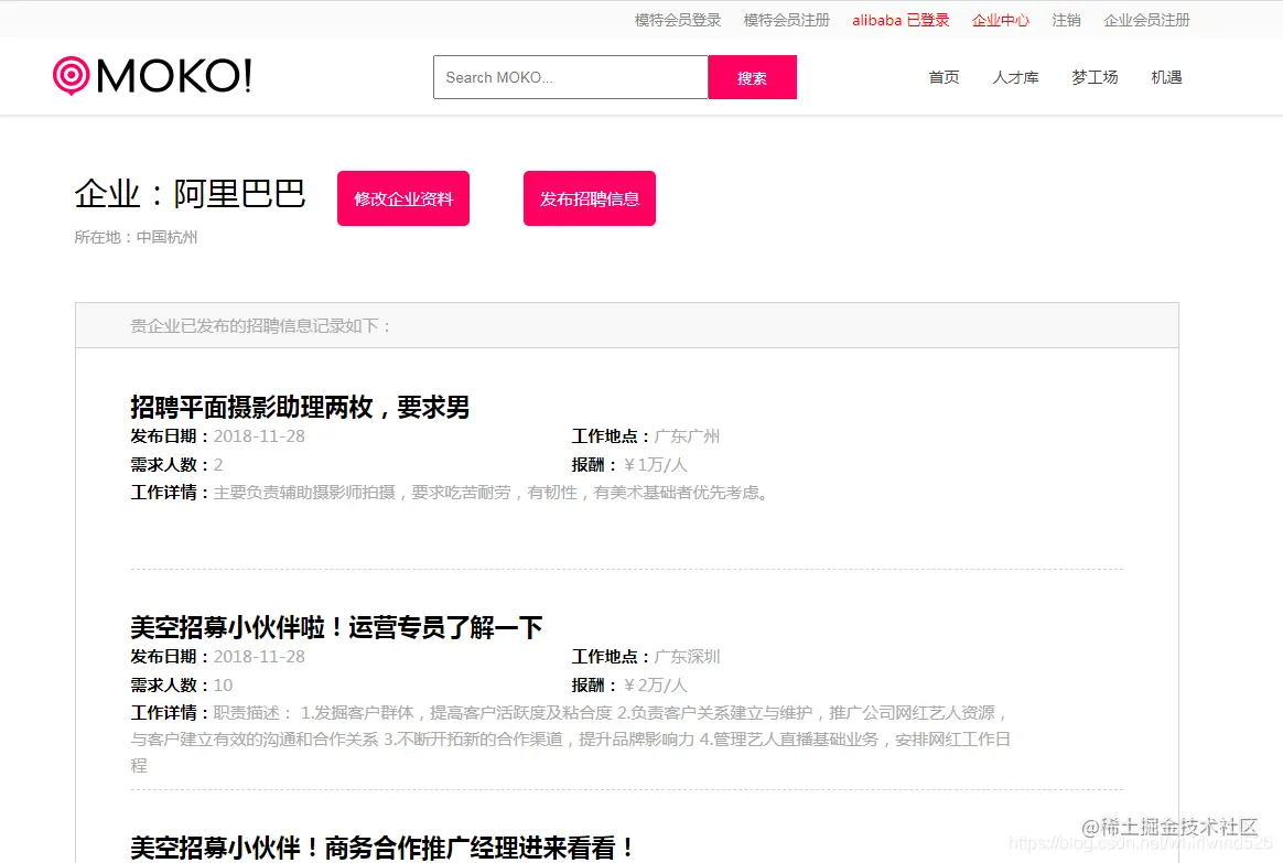 以上是模特人才招聘网站的系统功能展示,本项目运行完整,适合做毕业设计使用。