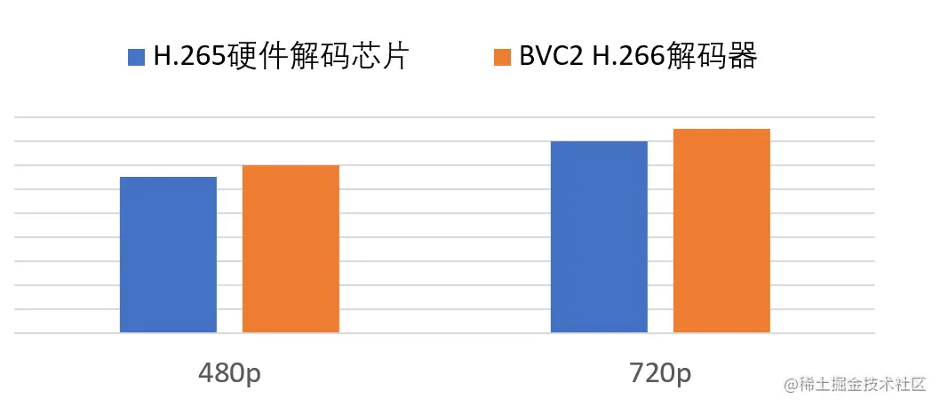 在手机端相同的播放质量测试环境下,BVC2解码器在标清、高清视频上,能够实现与H.265硬件解码芯片接近的CPU占用率和耗电量,表征已达到线上批量使用的程度。