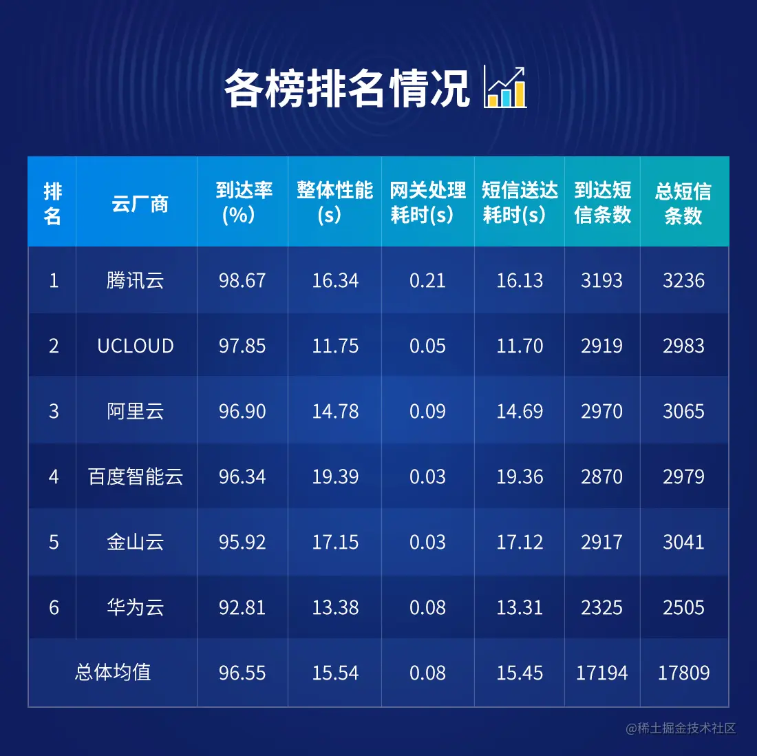 短信整体性能排行榜