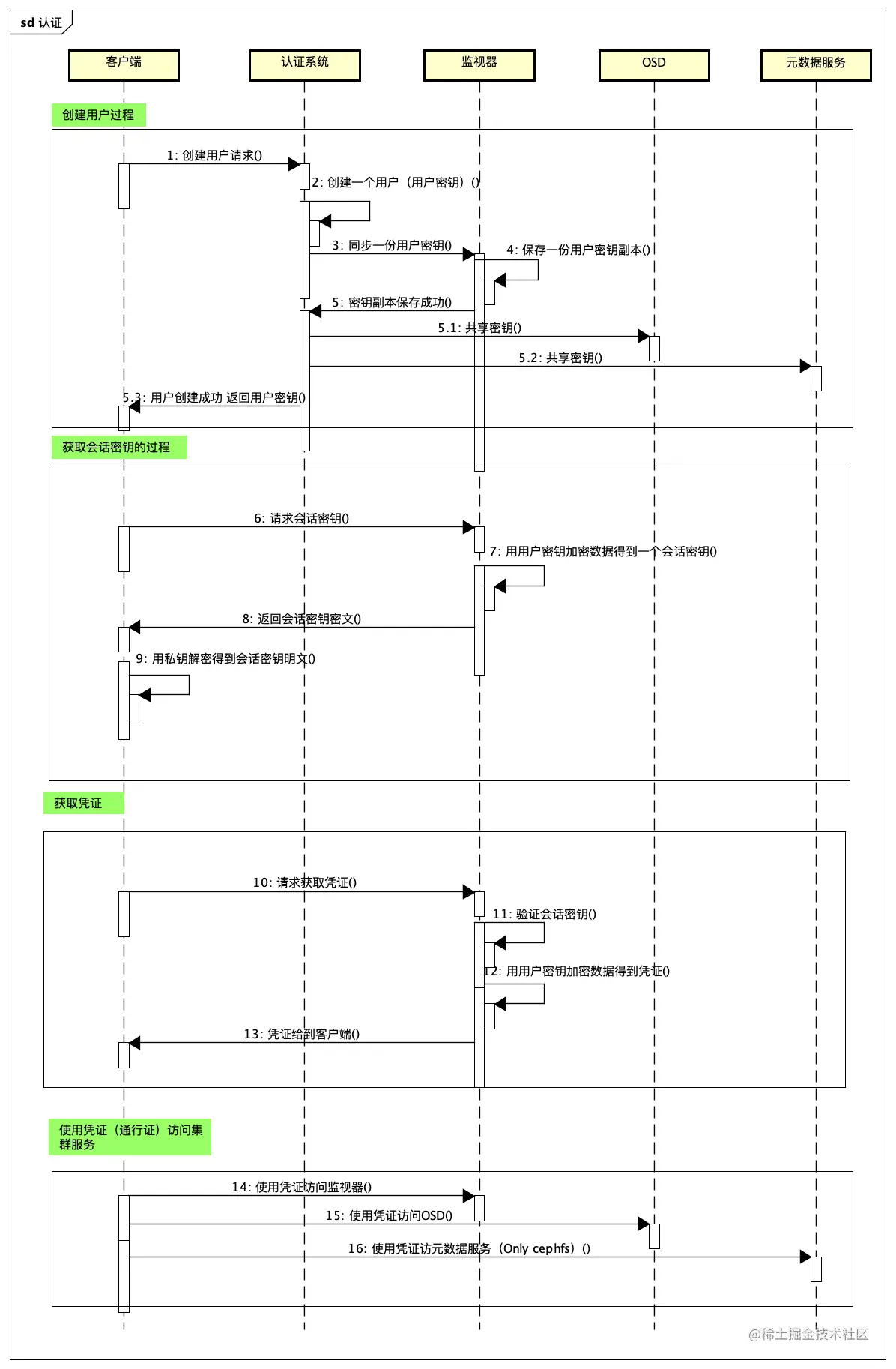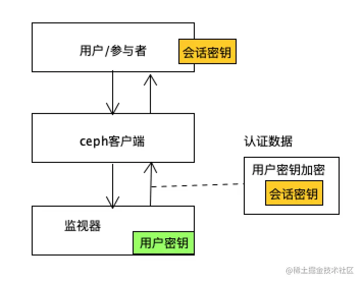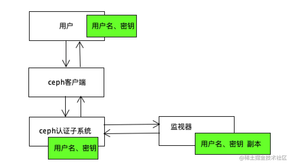 ceph认证系统会把用户名和密钥在监视器保存一份副本