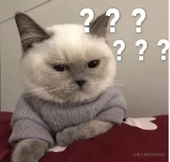 - 3中没有重复输出,因为这个例子中传入的参数是fn()且fn函数没有return任何东西,对于fn()而言,它的本质只是把fn执行一遍,但它什么都不是(fn的函数类型是void,什么都没返回,相当于啥也不是),所以setInterval接收到第一个参数时感受应该就和下面的猫猫表情包一样,就很迷惑,这是个啥???我明明是要接收函数来着,这给我传了个啥???所以它不会去重复执行fn,因为我们也没把fn传给setInterval;