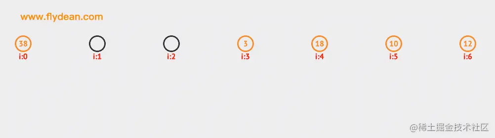 看一个二次探测的例子,上面的例子中我们已经有38,3和18这三个元素了。现在要向里面插入10和12。大家可以自行研究下探测的路径。