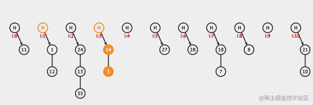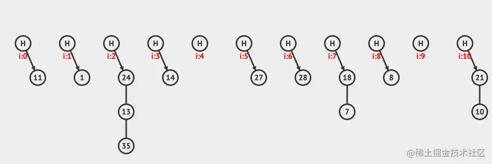 上面是分离链接插入的例子,向现有的hashMap中插入12和3这两个元素。
