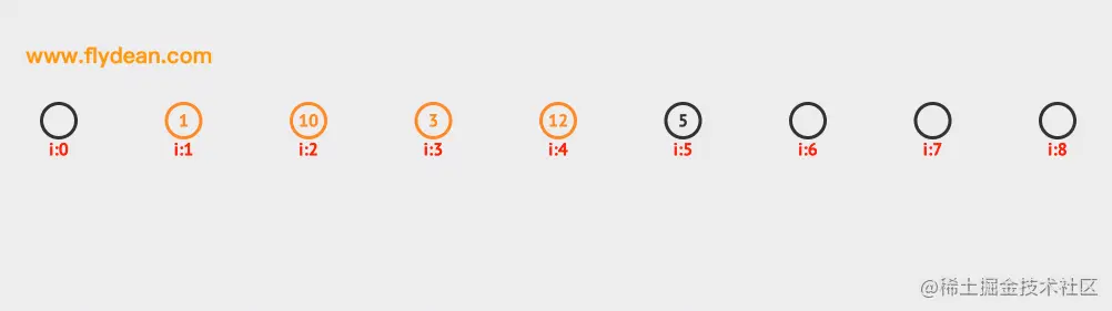 先看个例子,上面的数组中,我们的基数是9,数组中已经有1,3,5这三个元素。