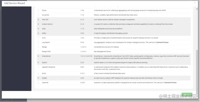 2、首页左下角点击add service,勾选未安装的impala进行安装