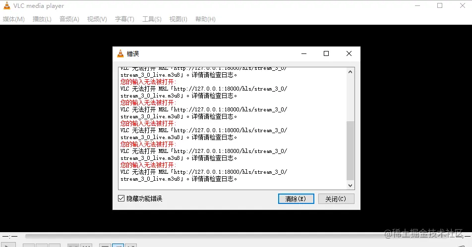 我们复现了项目现场的问题,发现尝试使用旧版视频流地址播放确实是不成功的,VLC播放显示如下: