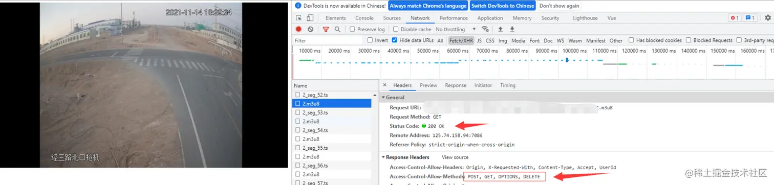 这里我们将EasyPlayer.js请求模式改为GET后再次检查视频流的播放。