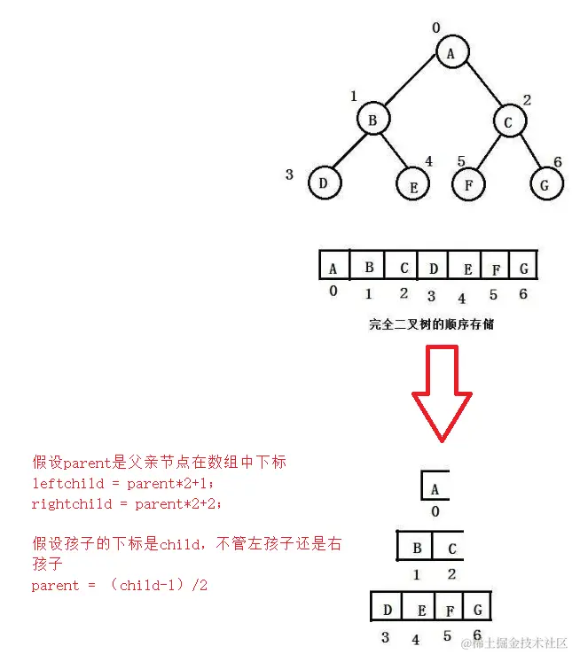 既然堆是完全二叉树的形式存储的那么就非常适合用数组的方式来表示