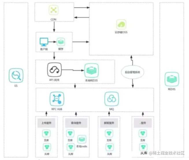 如上图所示,我把业务分块,做了垂直切分,切成一个个独立的系统,每个系统各自衍化,有自己的库、缓存、ES等辅助系统,系统之间的实时交互通过RPC,异步交互通过MQ,通过这种组合,共同完成整个系统功能。
