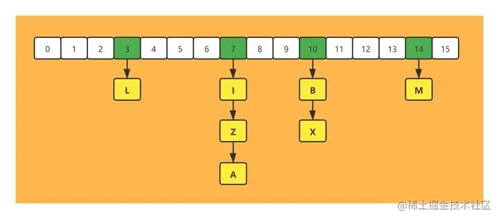 假设初始Skip List跳跃列表中已经存在这些元素,他们分布的结构如下所示:
