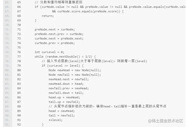 首先分析的是执行插入操作时计算随机数的过程,这个过程会涉及层数的计算,所以十分重要。对于节点他有如下特性: