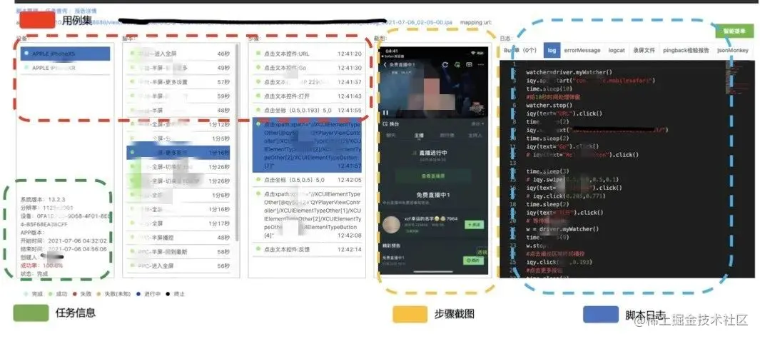 爱奇艺iOS云录制回放提供的测试报告包含任务概况、设备信息、用例执行步骤、执行日志等内容,让我们对每个用例的执行过程都了如指掌,快速还原崩溃前后场景。