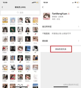 如果和删除的好友在同一个群的话,那么就好办了,直接在共同的群,找到头像,点击进去,就可以直接【添加到通讯录】,等待通过好友验证即可找回最近删除的好友啦。