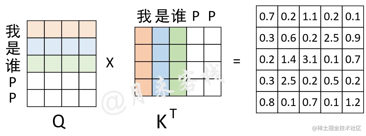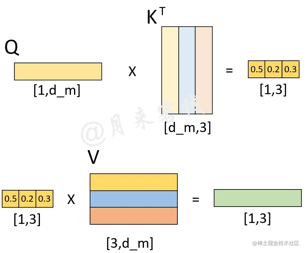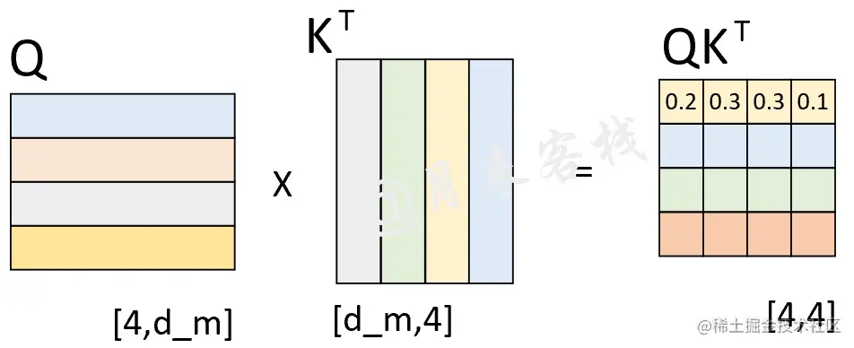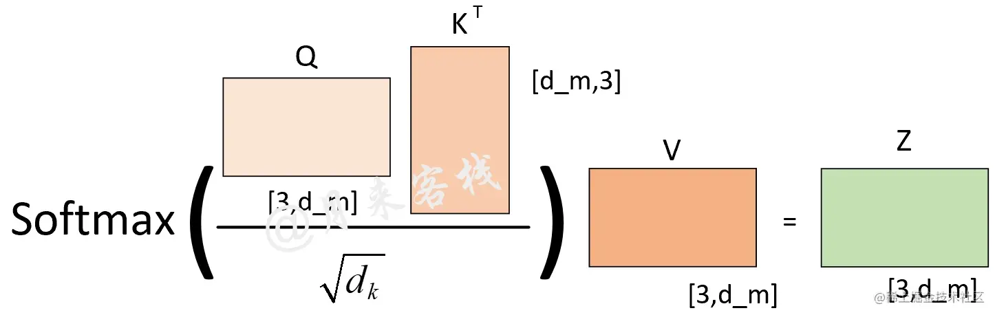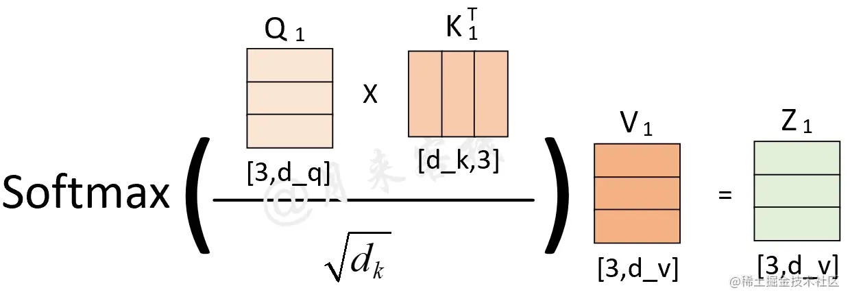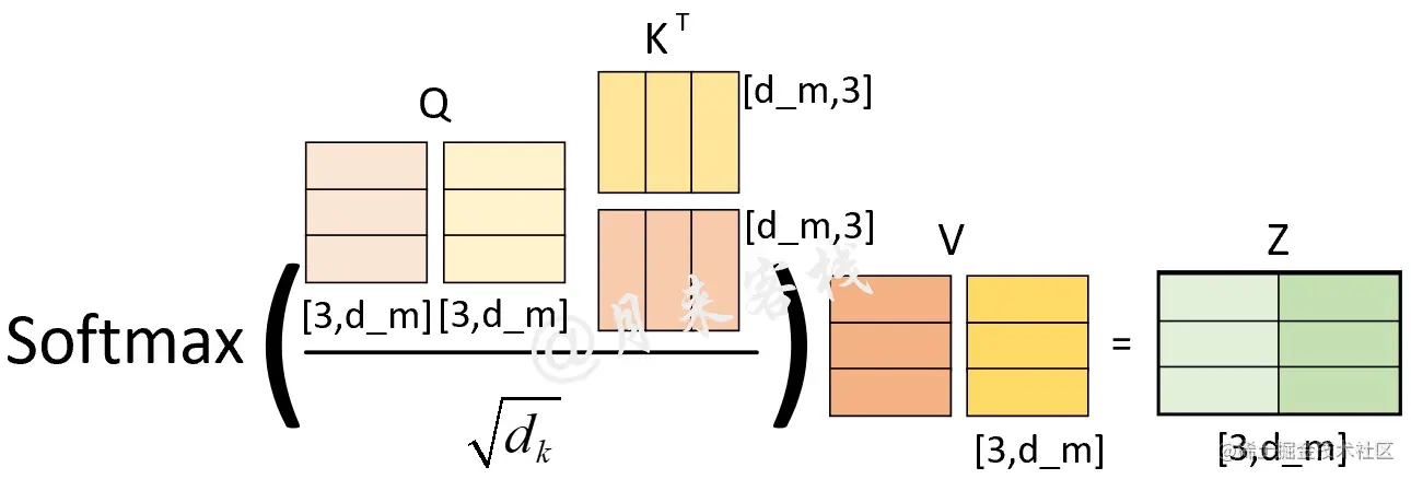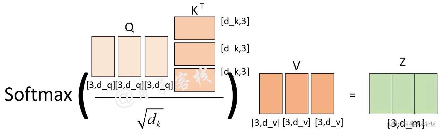 其中Q、K和V分别为3个矩阵,且其(第2个)维度分别为 (从后面的计算过程其实可以发现
