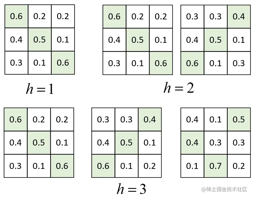 。此时,对于第1个头来说有: