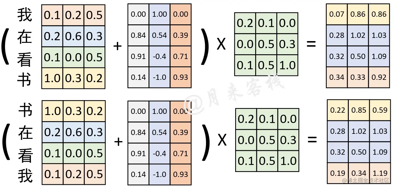 如果不加Postional Embedding的话,那么以下序列对于模型来说就是一回事:
