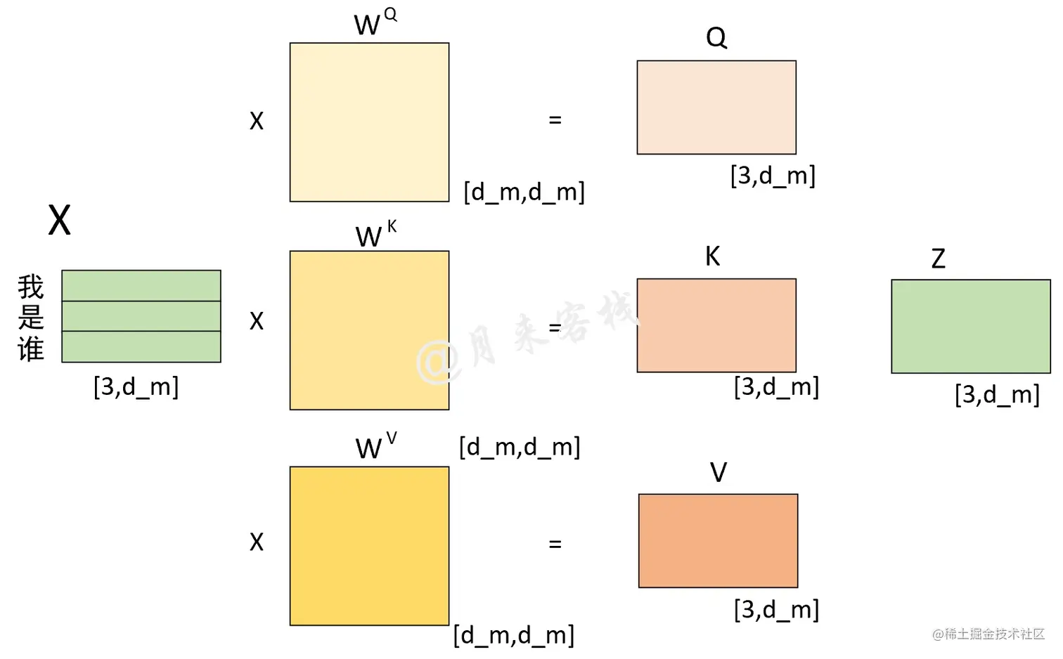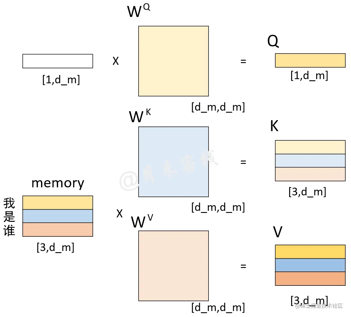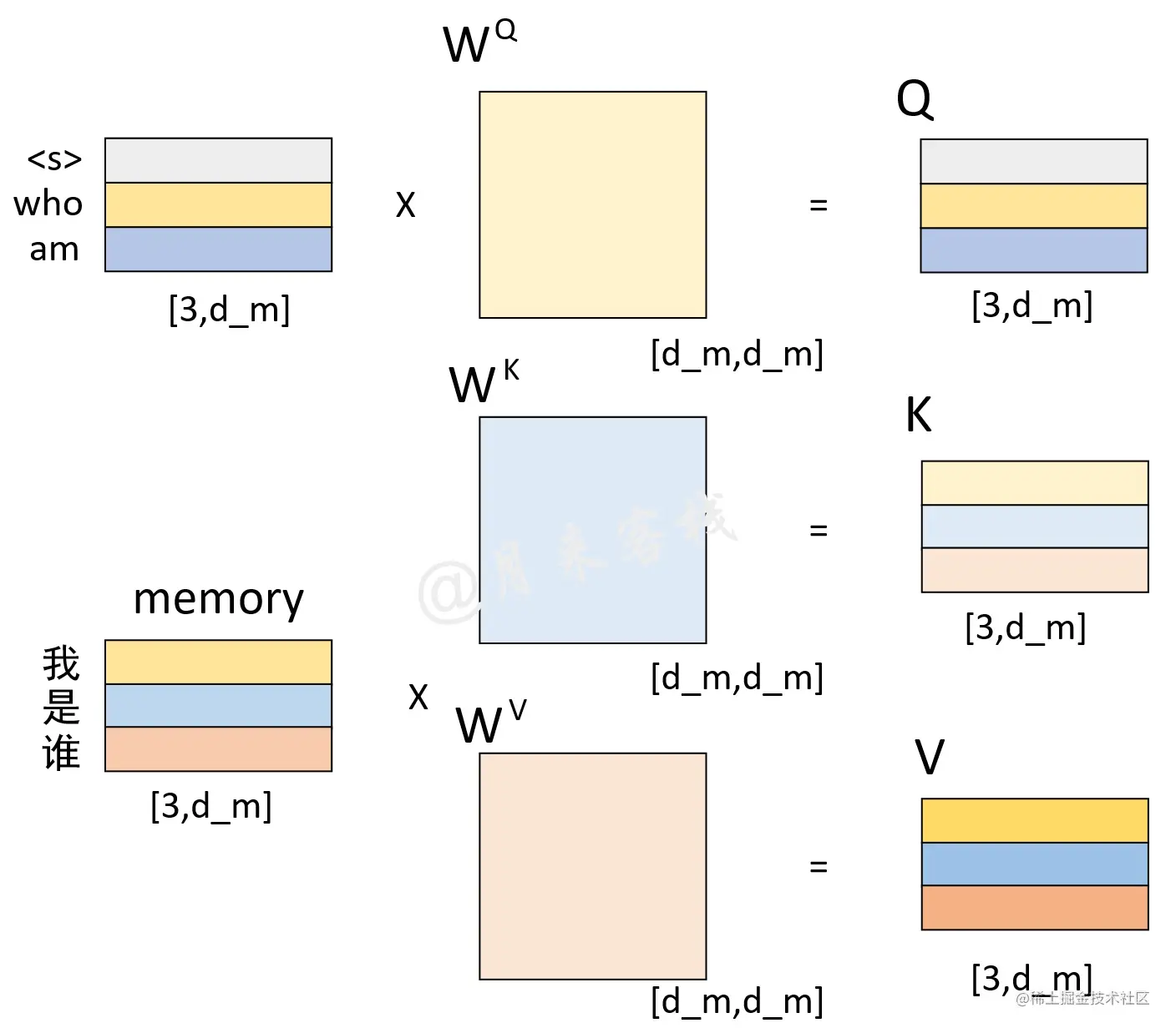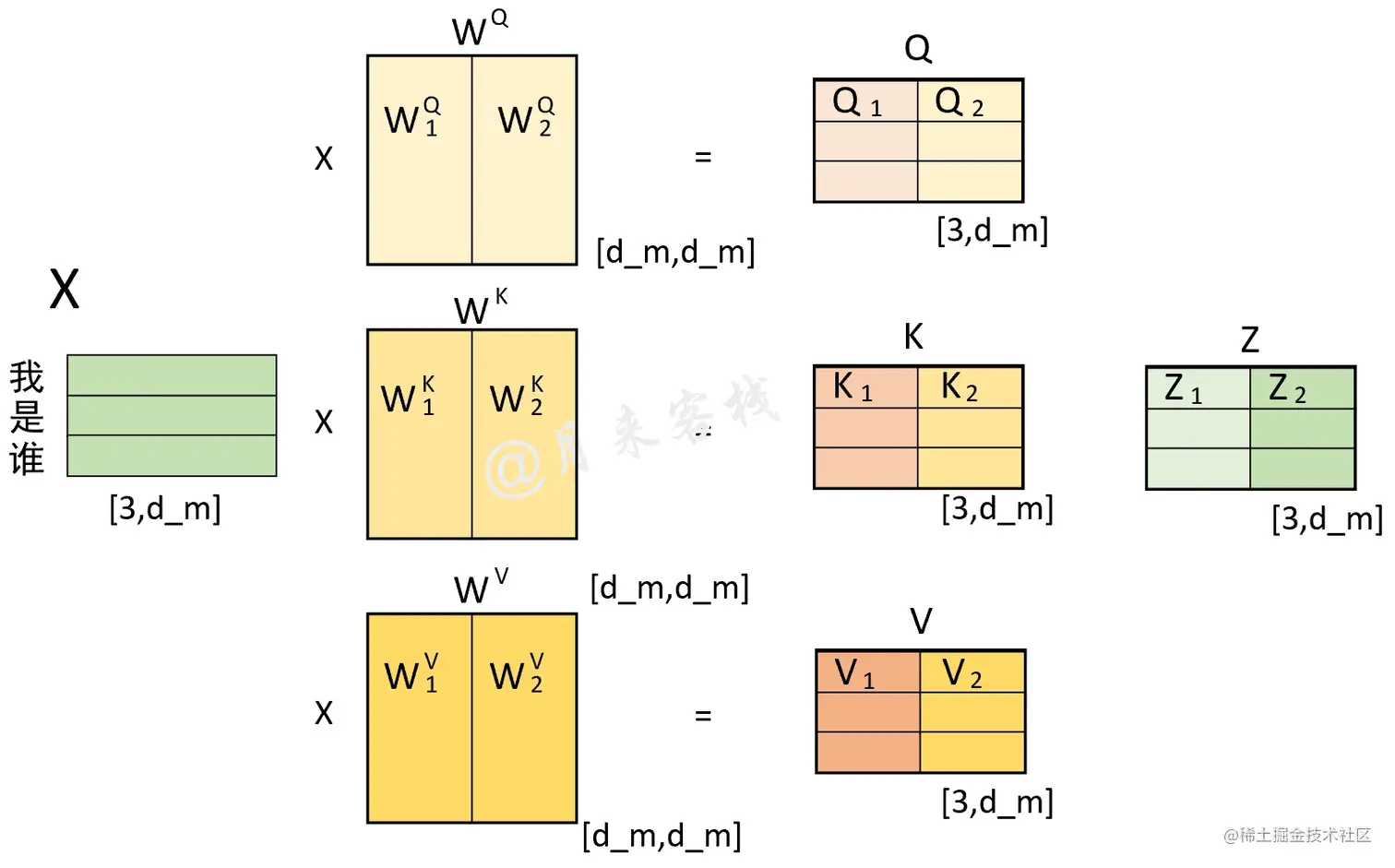 图 1-4. Q、K和V计算过程图
