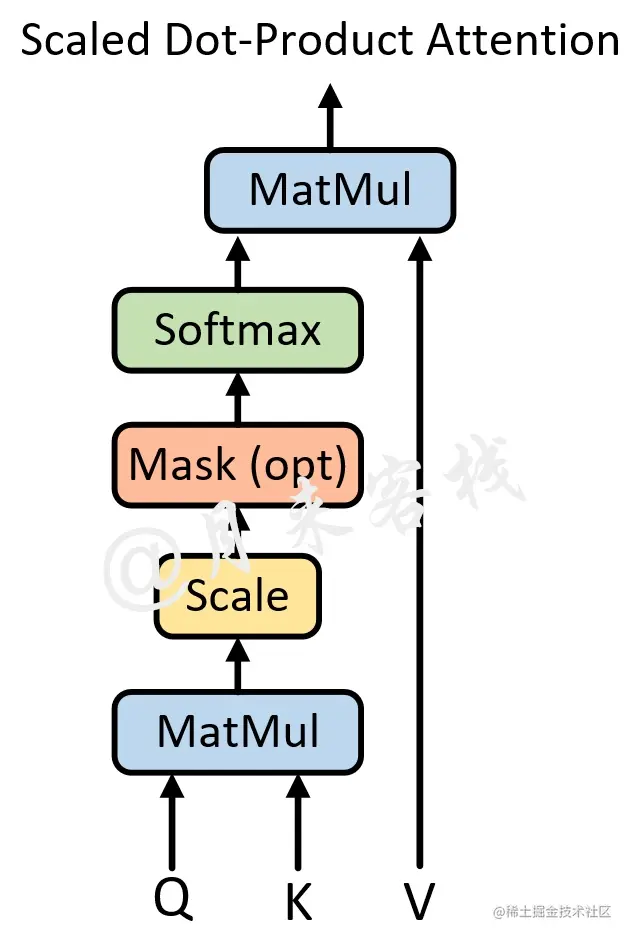 首先需要明白一点的是,所谓的自注意力机制其实就是论文中所指代的“Scaled Dot-Product Attention“。在论文中作者说道,注意力机制可以描述为将query和一系列的key-value对映射到某个输出的过程,而这个输出的向量就是根据query和key计算得到的权重作用于value上的权重和。