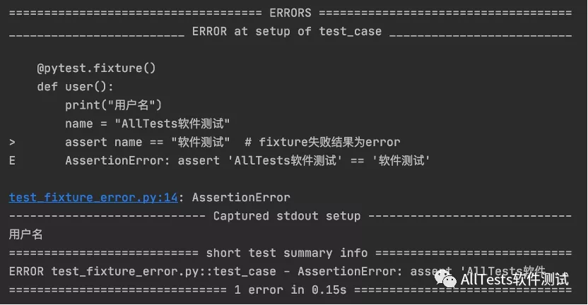 assert name == "软件测试" # fixture失败结果为error