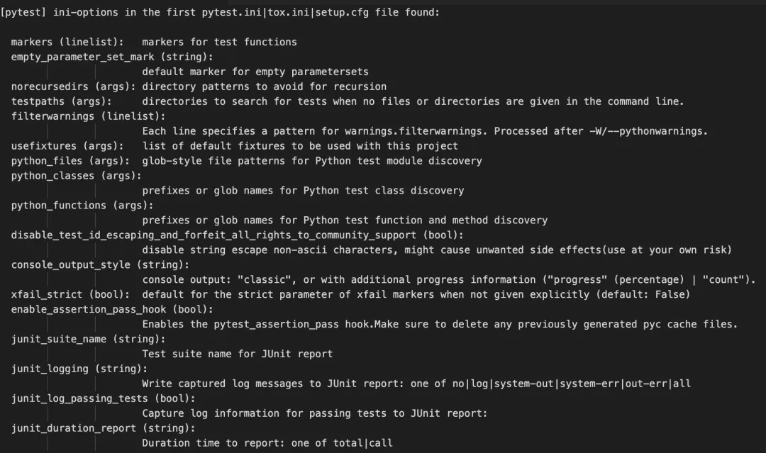 注意:pytest.ini 不能使用任何中文符号,包括汉字、空格、引号、冒号等等。
