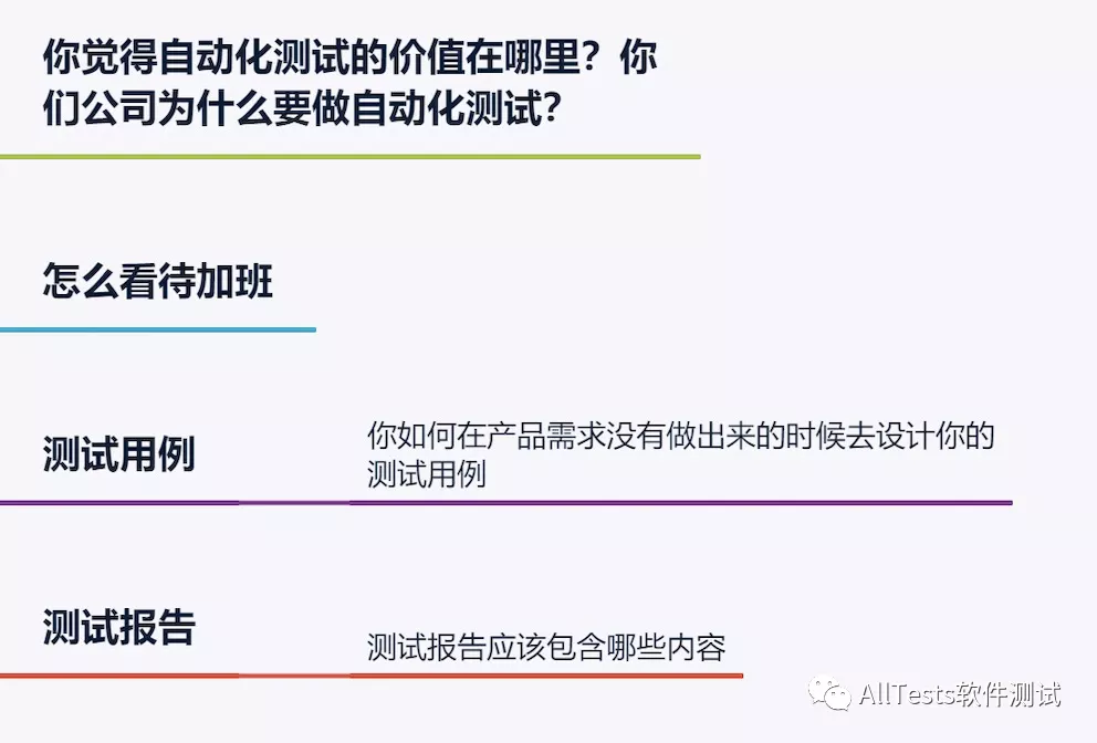 软件测试面试问题参考 Meng 2021-11-19 121 阅读1分钟 目录 1、前言 2、面试技术题 3、面试非技术题 1、前言 当面试官面试应聘者时,面试到一段时间后,不知道还要问什么了,以下面试问题可参考;应聘者也可以参考这些问题,私下总结整理一下,没准下次面试的时候,考官就会问到的哦。 2、面试技术题 3、面试非技术题