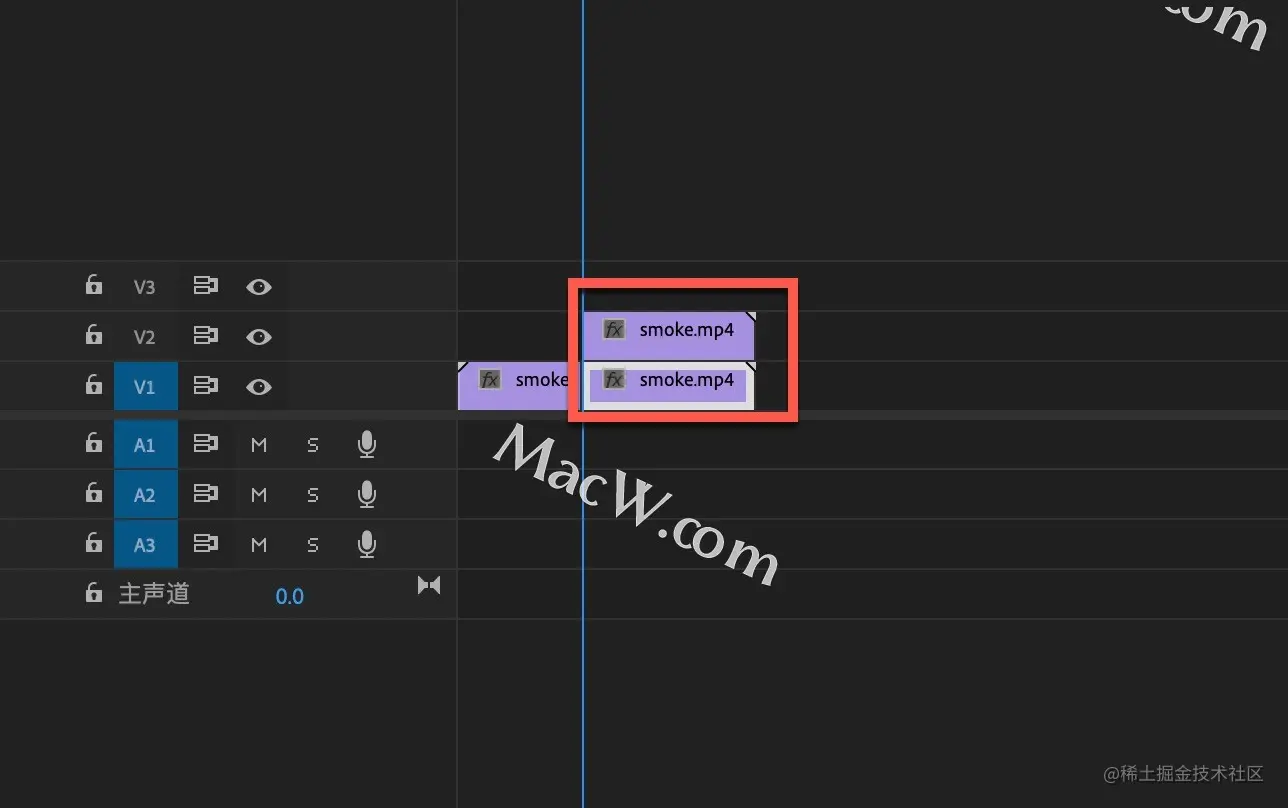 按住option键鼠标左键向上拖动后面的视频