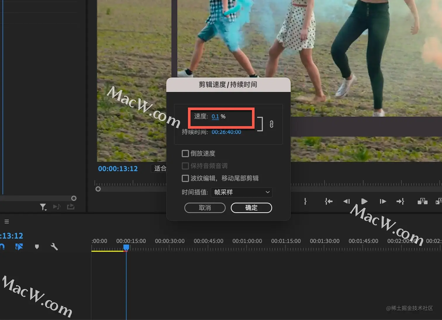 速度修改为0,显示是0.1
