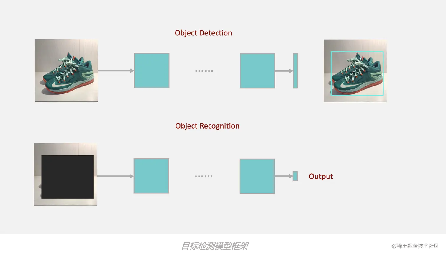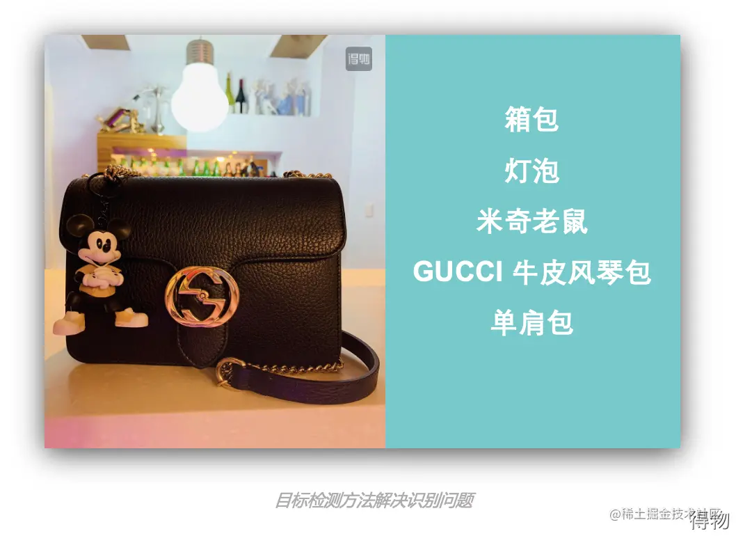 这种思路很常见。比如在社区中,我们想识别一个图文帖子中,图中达人他的穿搭是什么样的,有没有背什么牌子的包包,穿了什么品牌的鞋。不考虑实际算法难度,端对端的思路就是一个识别问题。输入一张图,输出几个标签。但是实际上,直接利用识别模型是很难的,因为有很多冗余背景的信息。我们面对这样的问题还是需要利用检测模型去做。最后只是不需要输出 bounding box 就好,可能还需要做一些去重的策略上的工作。