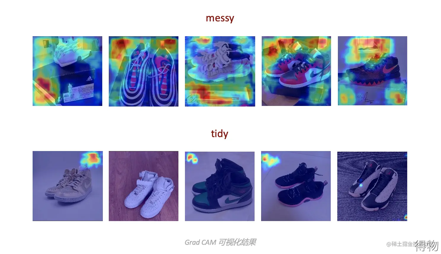 以上都是在项目初期,我能想到的一些简单的 idea。但是观察图片样本后,这些想法,除去第一条的思路是对的(空间维度的信息),其他三条的思路都是错的。举个例子,一双鞋放在地毯上,地毯本身是干净的,图片也除去主体和地毯没有其他任何物体。但是地毯有自己的纹路,高频信息很多,梯度信息很多。按照上述 idea 2、3、4 条的原则,这样的背景属于复杂度很高的背景。但是实际上,在样本中,这样的背景算是干净的。