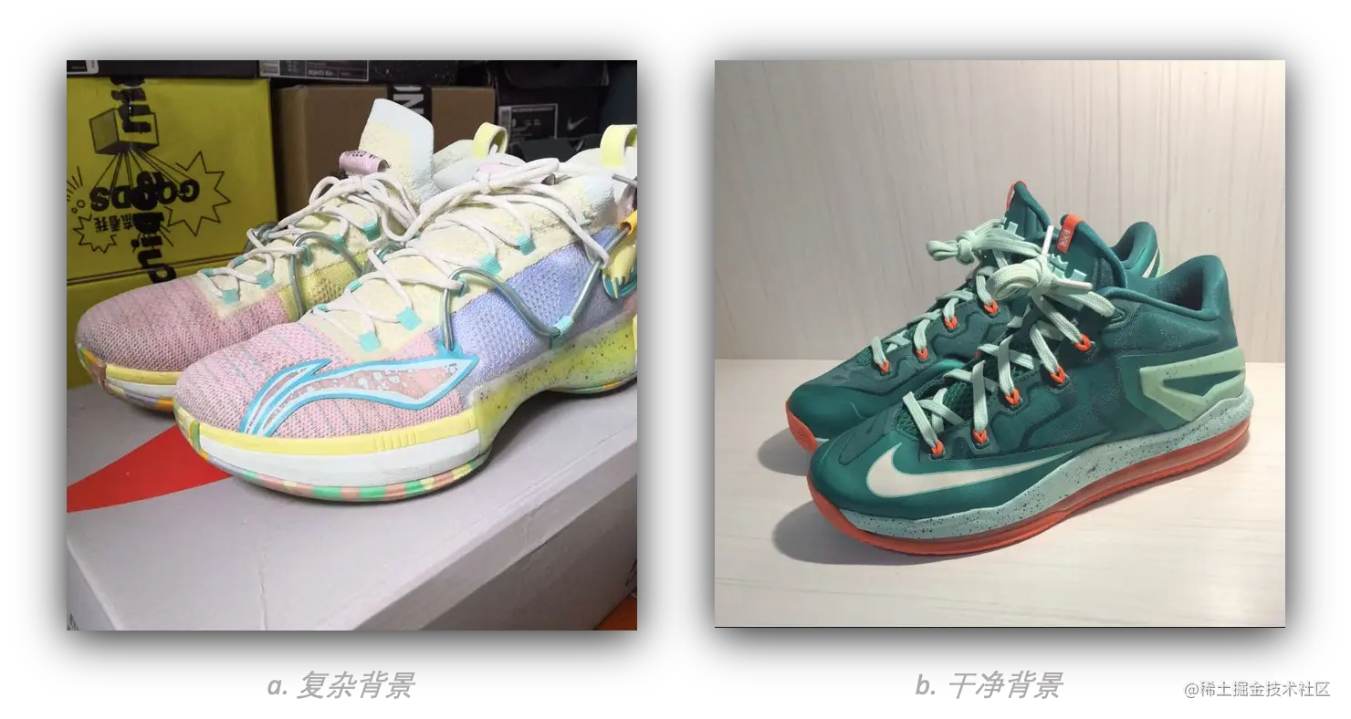 能够筛选出用户上传的球鞋图片中带有干净统一背景的图片,我们暂且就叫这个项目为 背景复杂度检测 任务。帮助后续估价以及出售环节算法降低难度,以及维持整个 app 图像质量在一个水平线上。