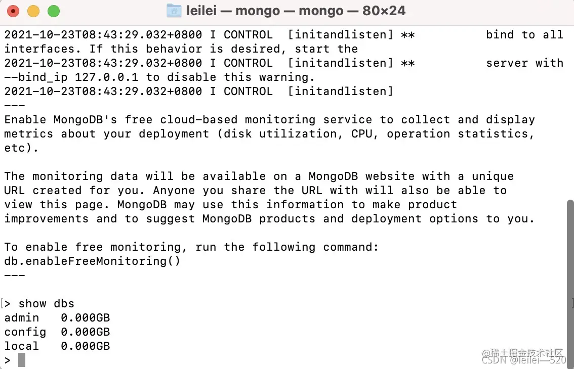show dbs 是查看本地的数据库,如果电脑刚安装的话 可能会存在这三个(我的电脑就是第一次安装mongodb)