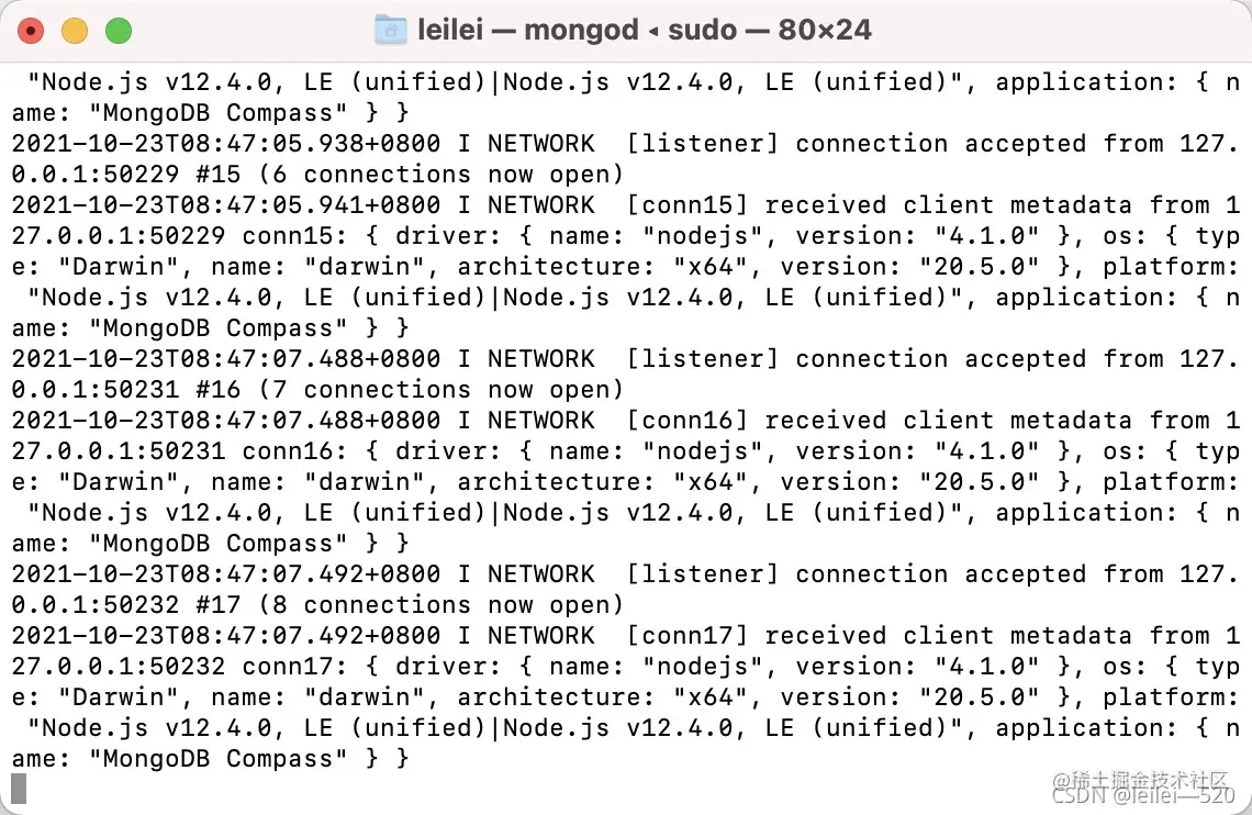 ! 配置默认文件存放路径 sudo mongod --dbpath=/usr/local/mongodb/data/db