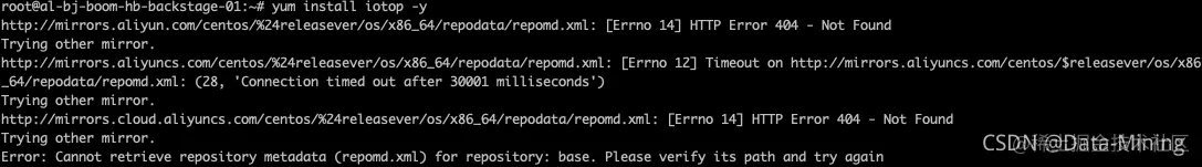 本来想安装 iotop 工具查看存储服务器的 IO 运行状态,啥也没想,直接安装: