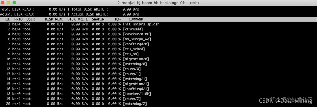 使用 apt 命令安装,工具 iotop 安装成功,使用如下命令查看服务器的 IO 状态: