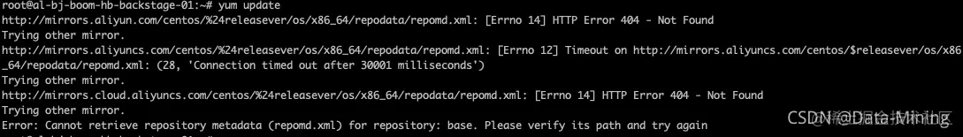 mirrors.aliyuncs.com/centos/%24r…: [Errno 12] Timeout on mirrors.aliyuncs.com/centos/$rel…: (28, 'Connection timed out after 30001 milliseconds')