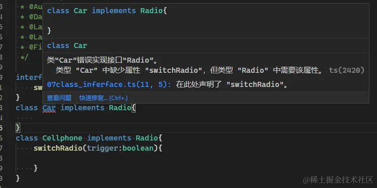 - 在TypeScript中类可以使用implements来实现接口