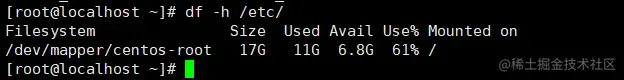 [root@localhost ~]# df -h /etc
