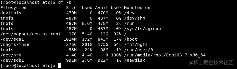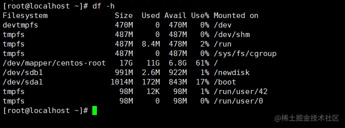 [root@localhost ~]# df -h