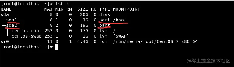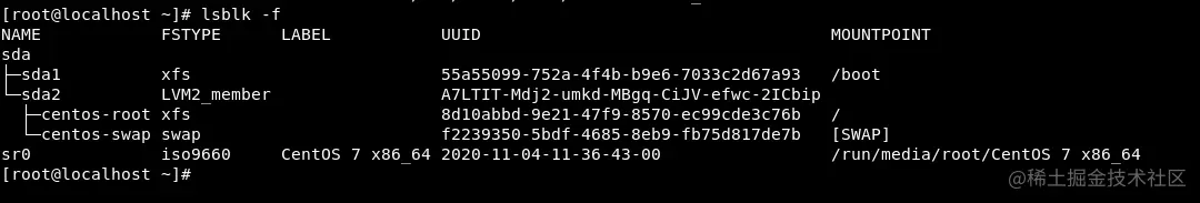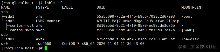 lsblk或lsblk -f