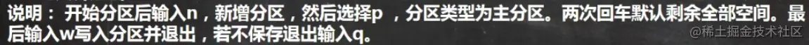 离开 fdisk 时按下 q,那么所有的动作都不会生效!相反的, 按下 w 就是动作生效的意思。