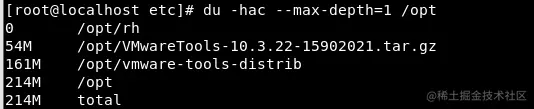 -a:列出所有的文件与目录容量,因为默认仅统计目录底下的文件量而已。-h:以人们较易读的容量格式 (G/M) 显示;-s: 指定目录占用大小-h: 带计量单位--max-depth=1: 列出的子目录深度-c: 列出明细的同时,增加汇总值