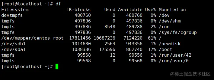 [root@localhost ~]# df