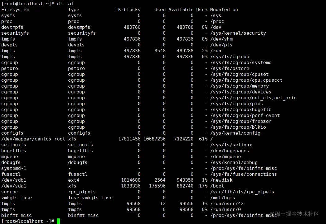 [root@localhost ~]# df -aT