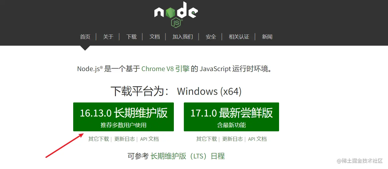 ****官方下载链接:nodejs.org/zh-cn/