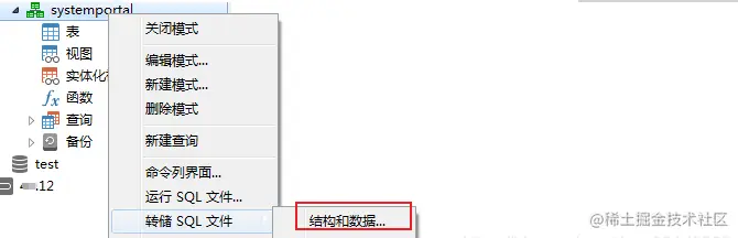 其中V1__systemportal_init.sql(初始化脚本)为项目所有的表结构与数据 以下方式导出。