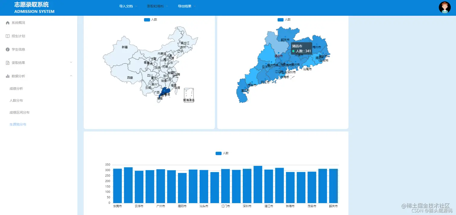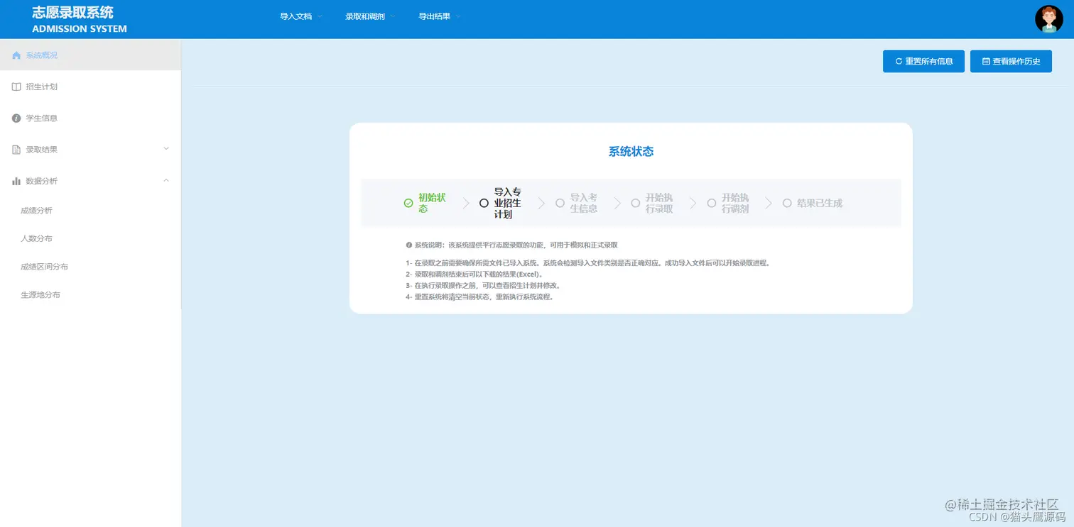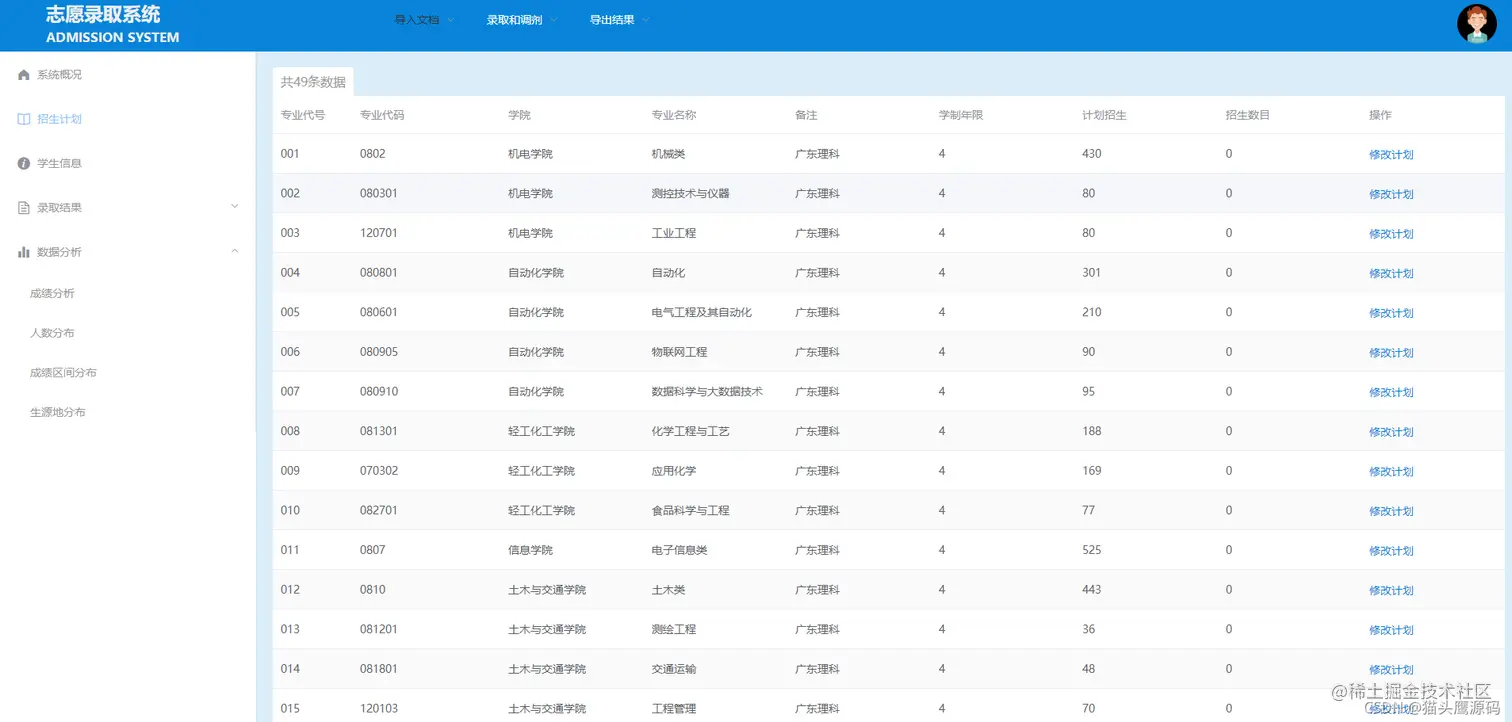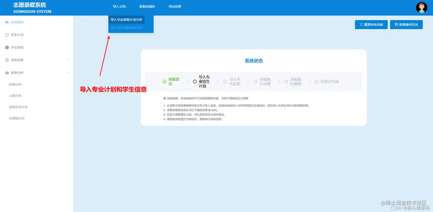 最初需要先导将招生计划和学生信息的excel数据导入到数据库