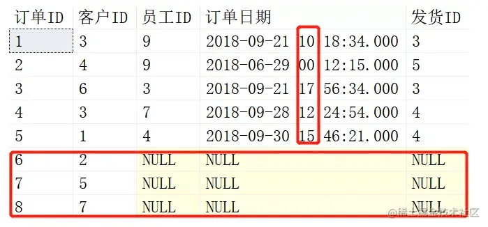 我们发现与Customers表里匹配上的订单日期被修改了,订单日期往后推迟了一小时,而没有匹配上的在订单表尾部增加了几行记录。这就是MERGE的实际应用了。