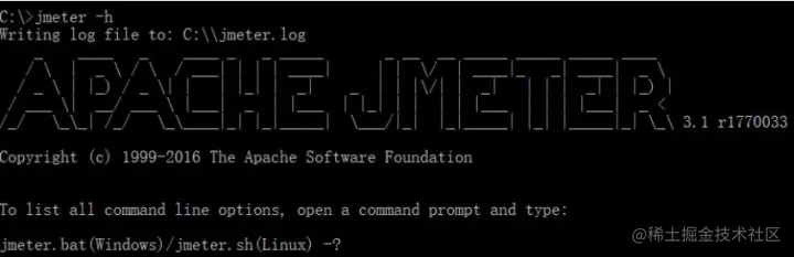 检验是否配置成功, 运行 cmd 输入 jmeter –h